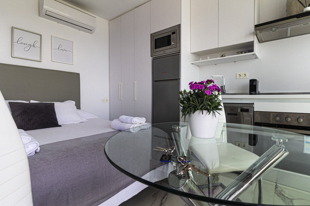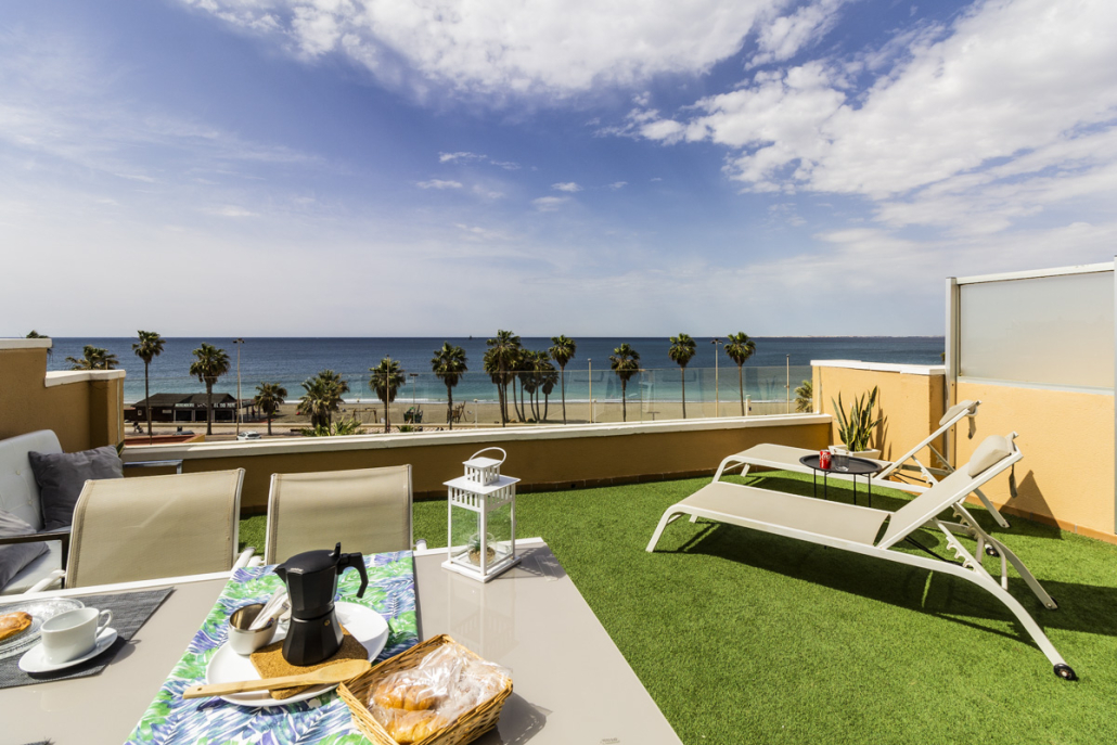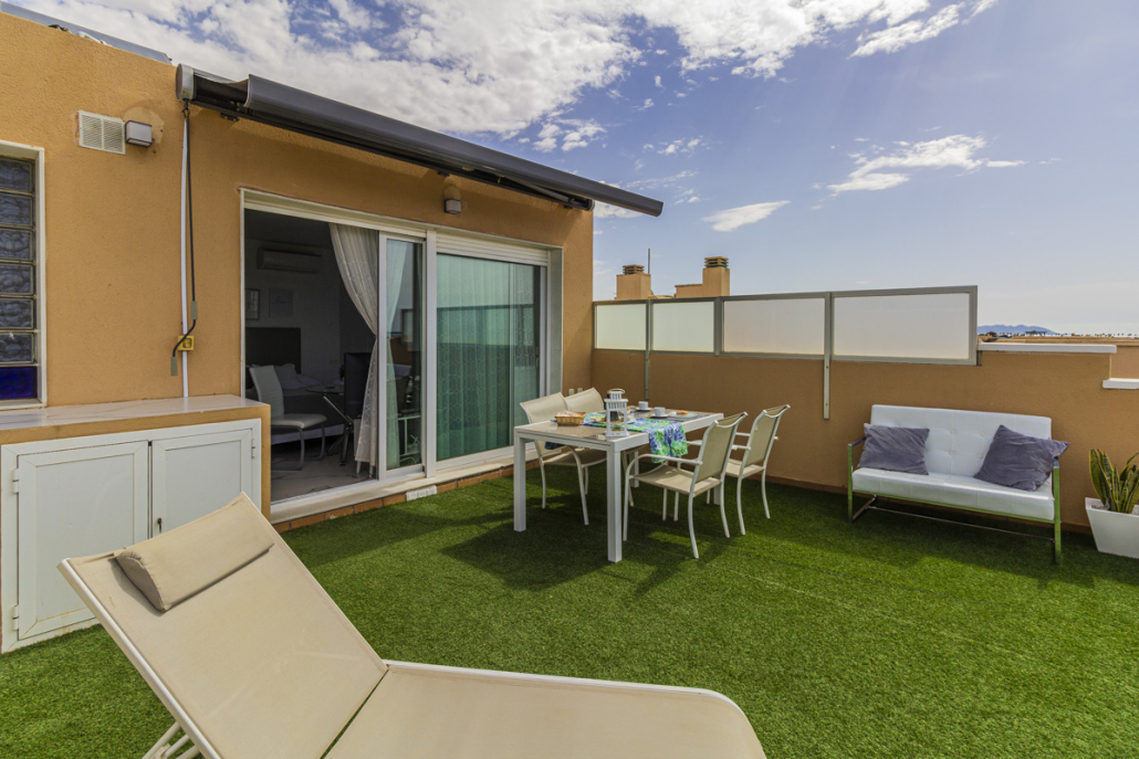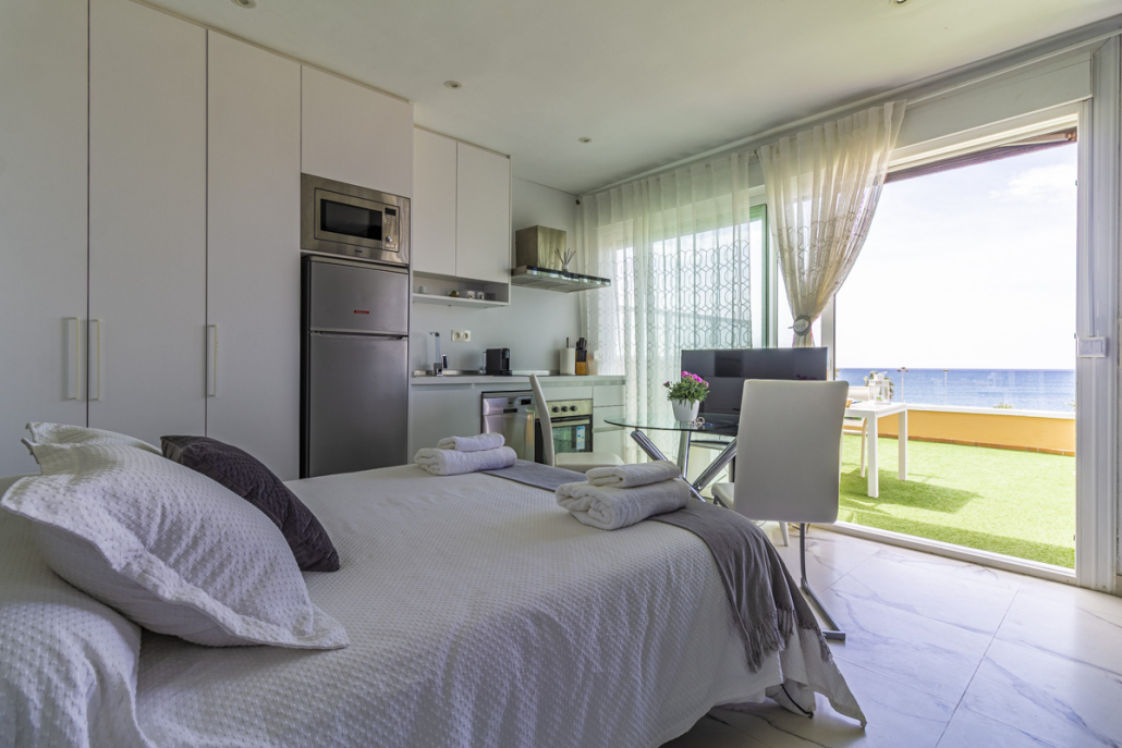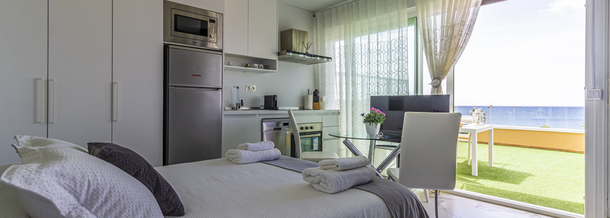 Disfruta de un coqueto APARTAMENTO en PRIMERA LÍNEA DE PLAYA CON TERRAZA Y PRECIOSAS VISTAS A LA BAHÍA DE ALMERÍA. Es un apartamento de un dormitorio distribuido en salón-comedor-cocina, con cama de matrimonio de 150 cm. y cuarto de baño con ducha. Terraza con vistas al mar con muebles de jardín. Aire acondicionado en salón-comedor-cocina y dormitorio.